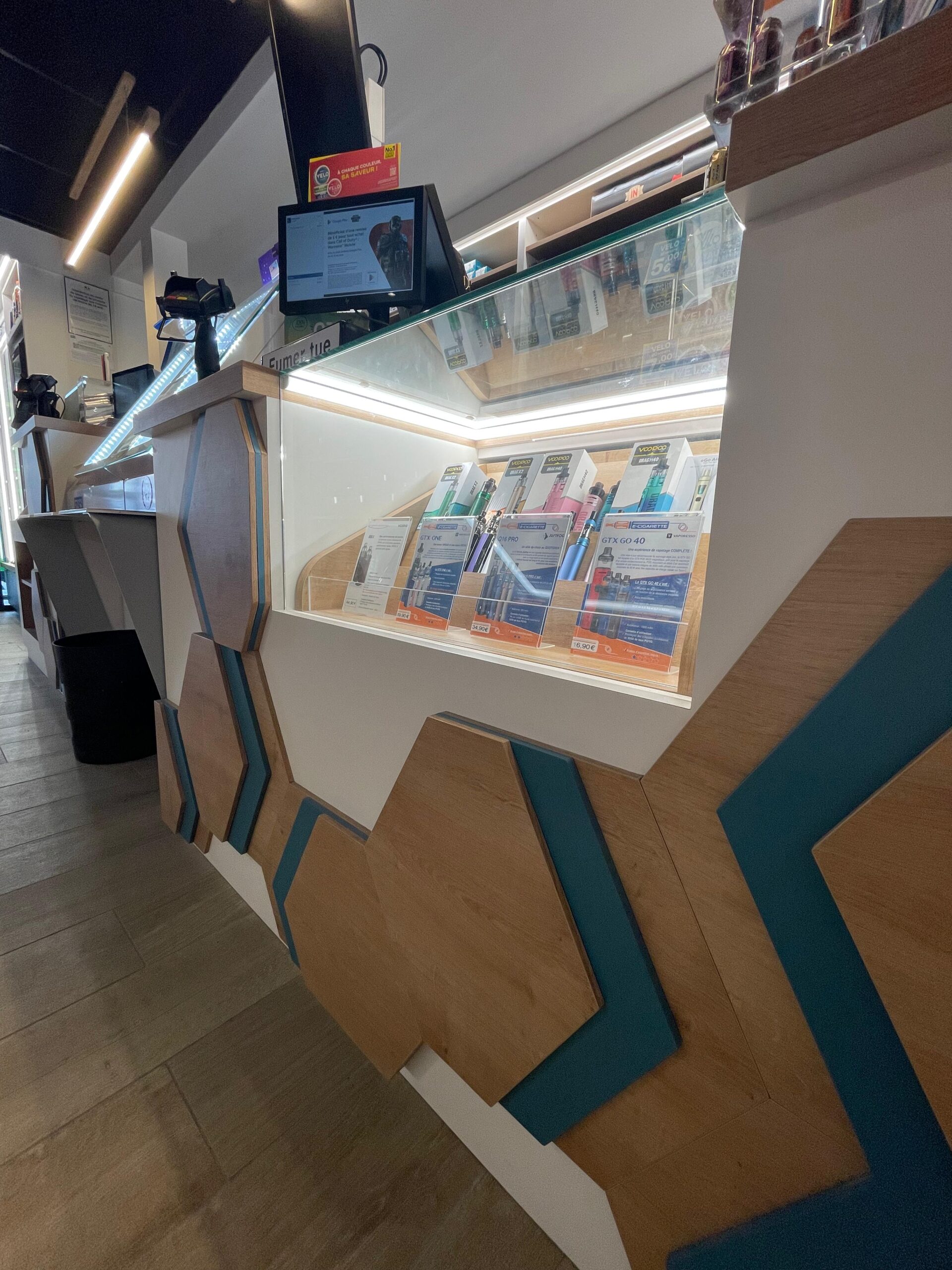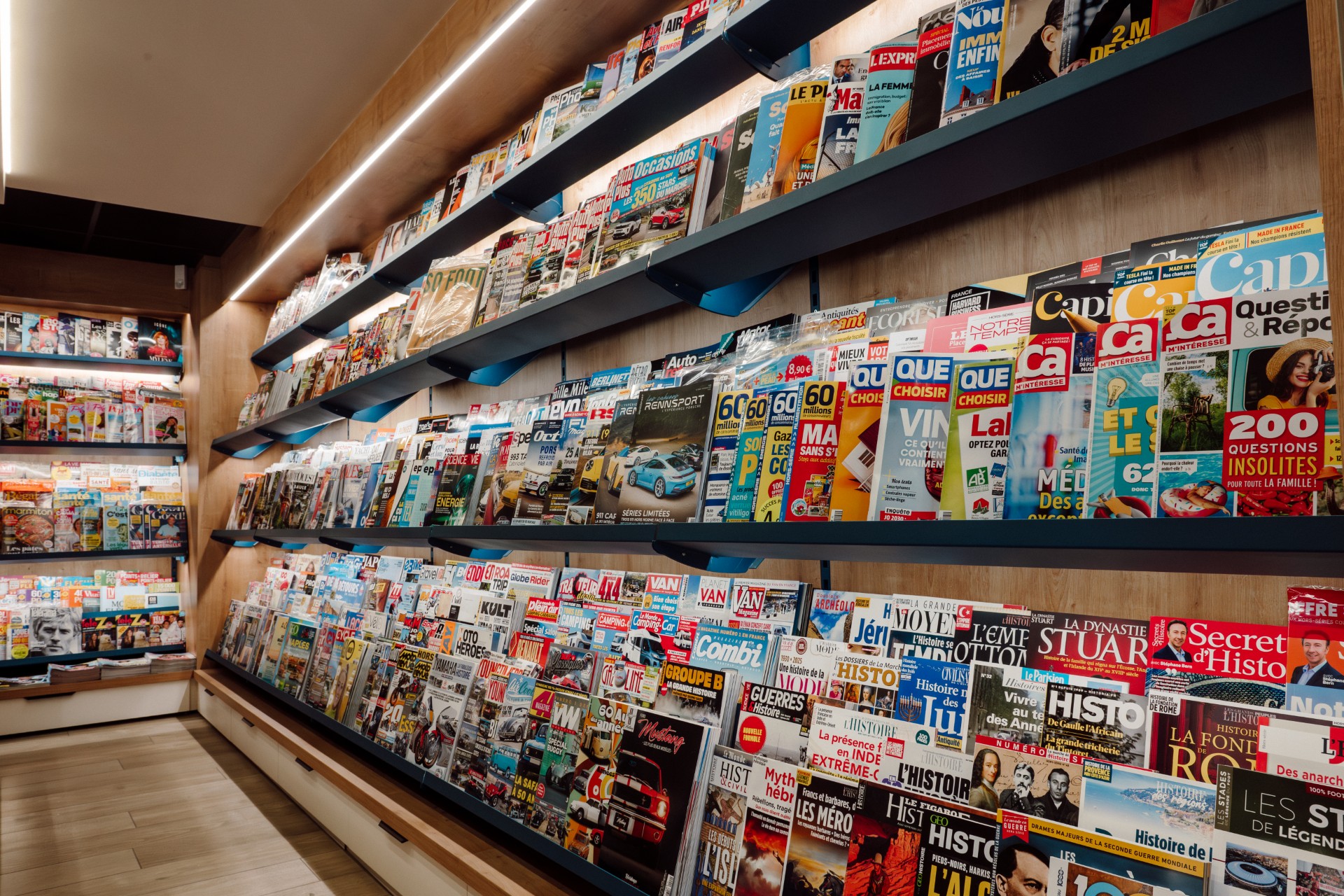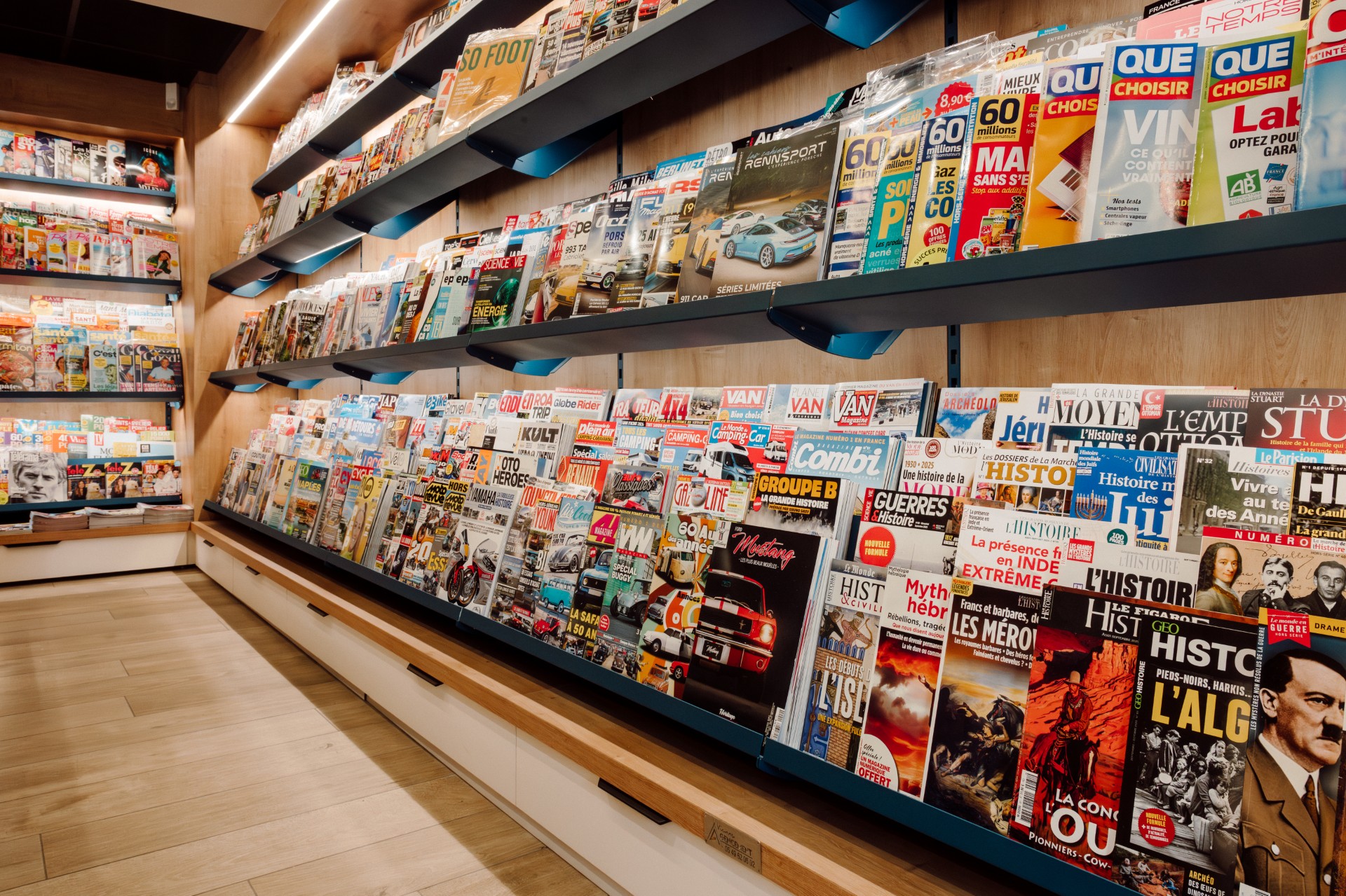 Le point fort de ce projet : un linéaire presse entièrement repensé et mis en valeur. Véritable élément central de l’espace, il se distingue par un éclairage intégré, des coloris dynamiques et une conception sur mesure. Ce mobilier, à la fois fonctionnel et attractif, attire le regard, facilite l’accès aux produits et accompagne naturellement le parcours client.
